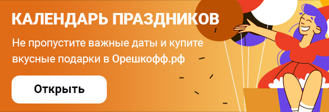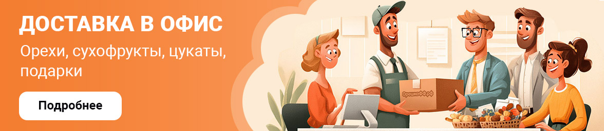 Все заказы доставляются собственной курьерской службой Орешкофф.рф, что гарантирует аккуратность, скорость и полную сохранность продукции.