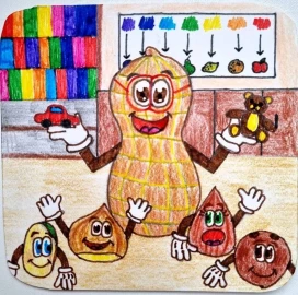 Основой нашего логотипа является мультяшный герой в виде арахиса. Поскольку детская фантазия безгранична, мы бы хотели оживить его в детских рисунках. Вероятно, многие помнят, что у нас была коллекция магнитов, посвящённая профессиям. Предлагаем Вашим детям пофантазировать и придумать, кем бы мог работать наш орешек. Возможно, эти рисунки станут основой для следующей коллекции.