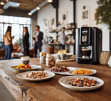 Доставка закусок в офис СПб — это возможность быстро и удобно организовать питание сотрудников. Орехи и сухофрукты заменяют привычные сладости и фастфуд, что делает рабочий день более здоровым и продуктивным.