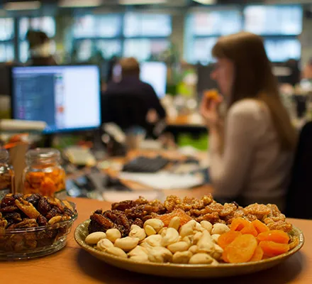 Орехи и сухофрукты — лучший вариант перекуса для сотрудников офиса. Эти продукты насыщают организм полезными веществами: витаминами, макро- и микроэлементами, а также обеспечивают энергией, помогая сохранять концентрацию и работоспособность в течение всего рабочего дня.