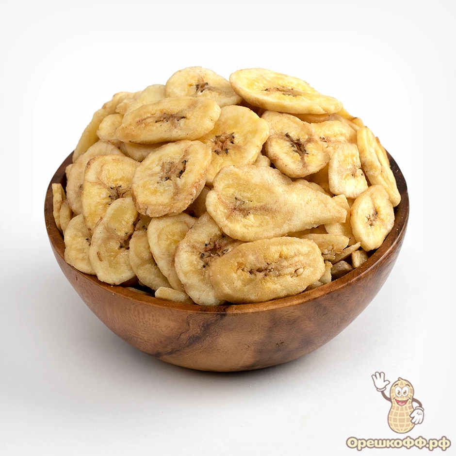 Банановые чипсы — это хрустящие и полностью высушенные ломтики бананов, которые в основном изготавливают из не крахмалистых и не спелых плодов. Предварительно их очищают от кожуры и режут на тонкие пластинки. Затем окунают в сладкий сироп с мёдом, что придаёт ломтикам дополнительную сладость. Затем полностью высушивают, пока ломтики не станут твёрдыми и хрустящими. Слайсы из банана являются отличной альтернативой конфетам. Благодаря высокой калорийности они быстро насыщают, а потому станут отличным перекусом на прогулке или в пути. Также это лакомство можно добавлять в каши и кондитерские изделия.