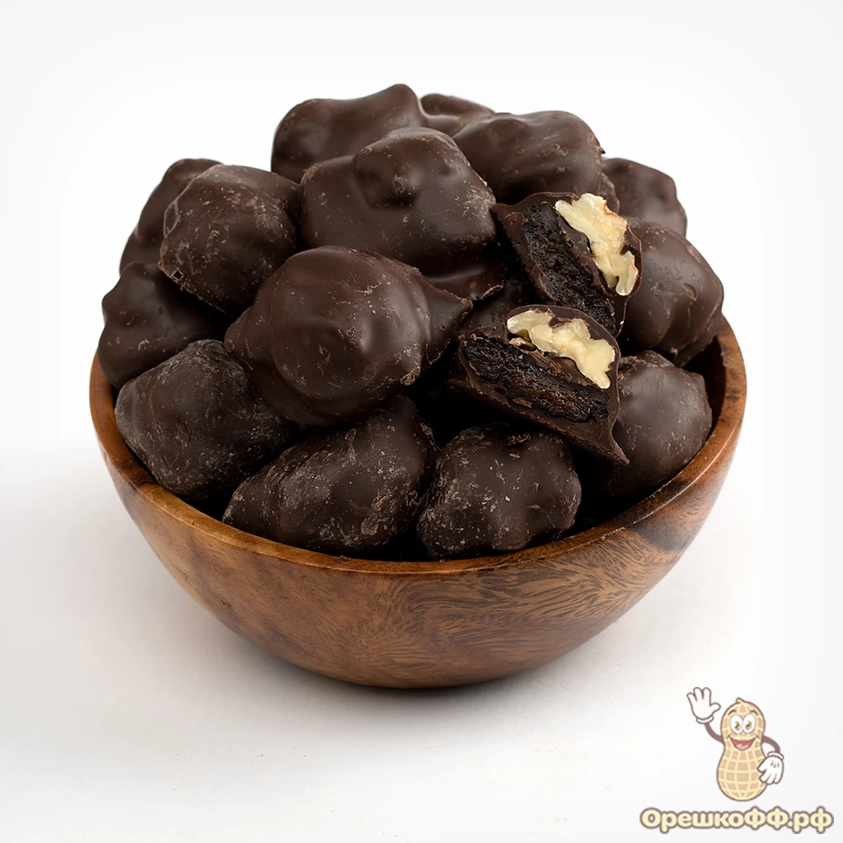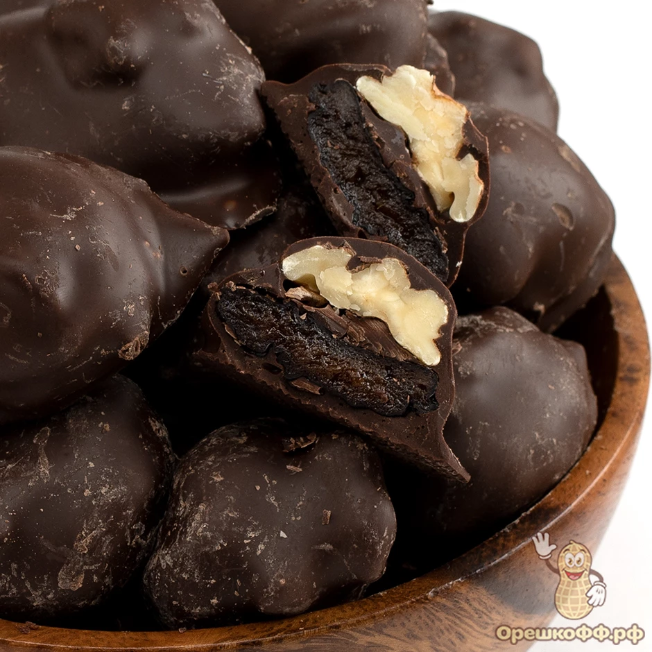 слива сушеная без косточки, грецкий орех, шоколад (сахар, какао-масло, какао тертое, какао-порошок, эмульгатор - лецитин, ароматизатор идентичный натуральному - ванилин).