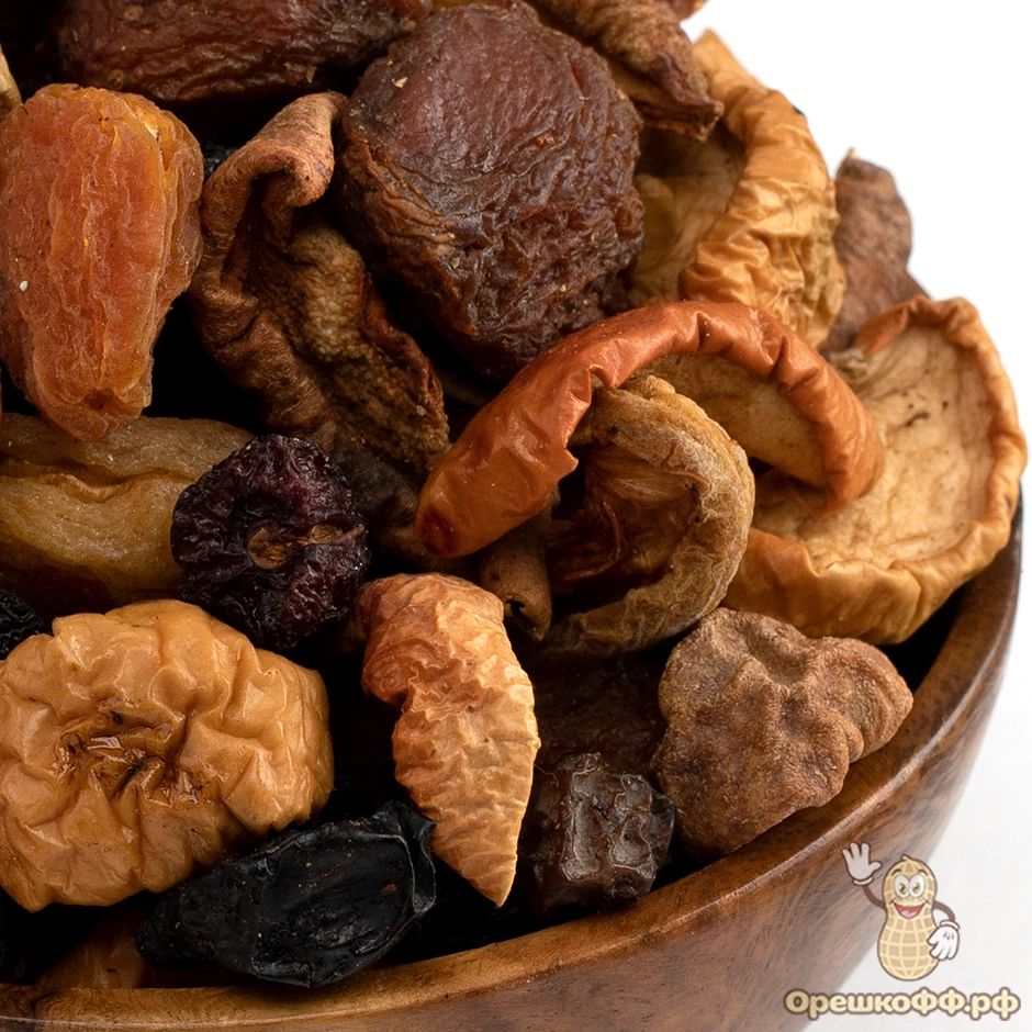 Компотная смесь — это идеальное сочетание сушёных фруктов и ягод, которые отлично дополняют друг друга и вместе создают насыщенный вкус и яркий аромат. Все составляющие компотной смеси высушены естественным способом, что позволило сохранить все свойства свежих плодов.