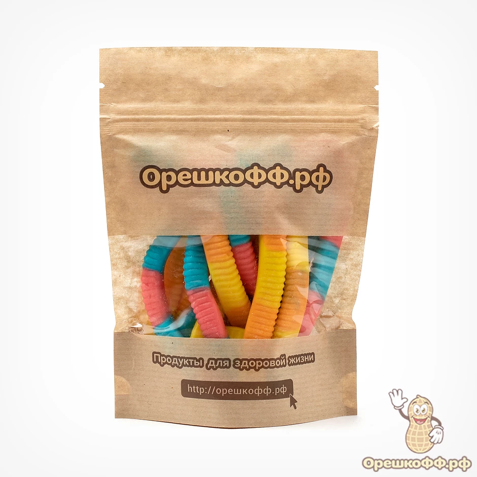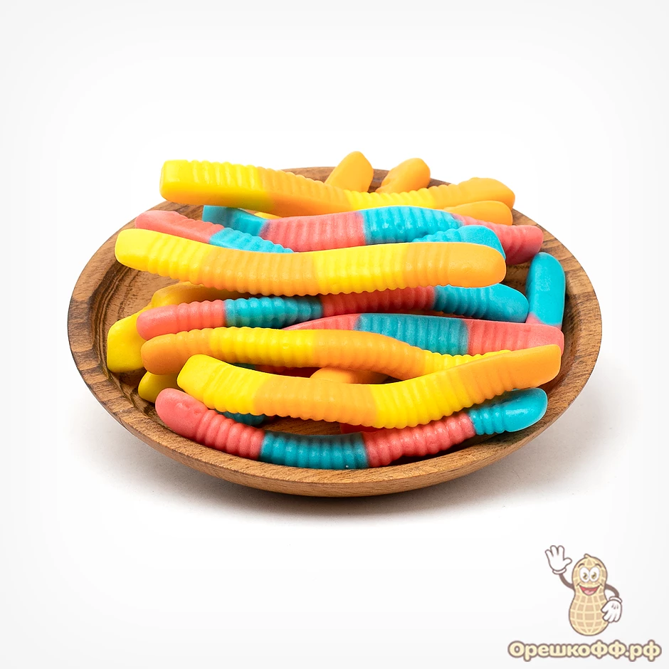 солодовый сироп, сахар, вода, желатин, пектин, модифицированный крахмал, увлажнитель: сорбит, кислоты: лимонная кислота, Dl-яблочная кислота, регулятор кислотности: цитрат натрия, увлажниетль: октикапрат глицерина, глазирующий агент: карнаубский воск, концентрированный яблочный сок, красители (E129, E133, E102, Е110, Е150d), ароматизаторы идентичные натуральным (клубника, черника, ананас, вишня, апельсин)