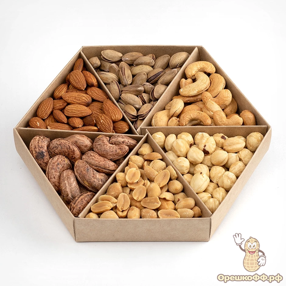 Коробка включает в себя пластиковую крышку и дно, изготовленное из целлюлозного картона, который безопасен для контакта с пищевыми продуктами. Состав коробки может меняться в зависимости от наличия товара на складе.
