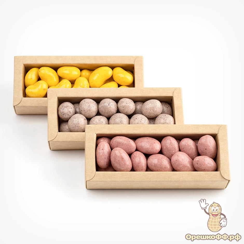 шоколадная глазурь белая (сахар, какао-масло, молоко сухое цельное, сухая молочная сыворотка, эквивалент какао-масла, эмульгаторы (рапсовый лецитин), творог натуральный сухой (молоко восстановленное из сухого обезжиренного молока и цельного молока, заквасочная культура на основе Streptococcus salivarius ssp. thermophilus, Lactococcus lactis subsp. cremoris, Lactococcus lactis subsp. lactis, Lactococcus lactis subsp. lactis biovar diacetylactis), ядро ореха миндаль жареного, глазирователь, ежевика сублимированная, глазирователь (смола гуммилак))