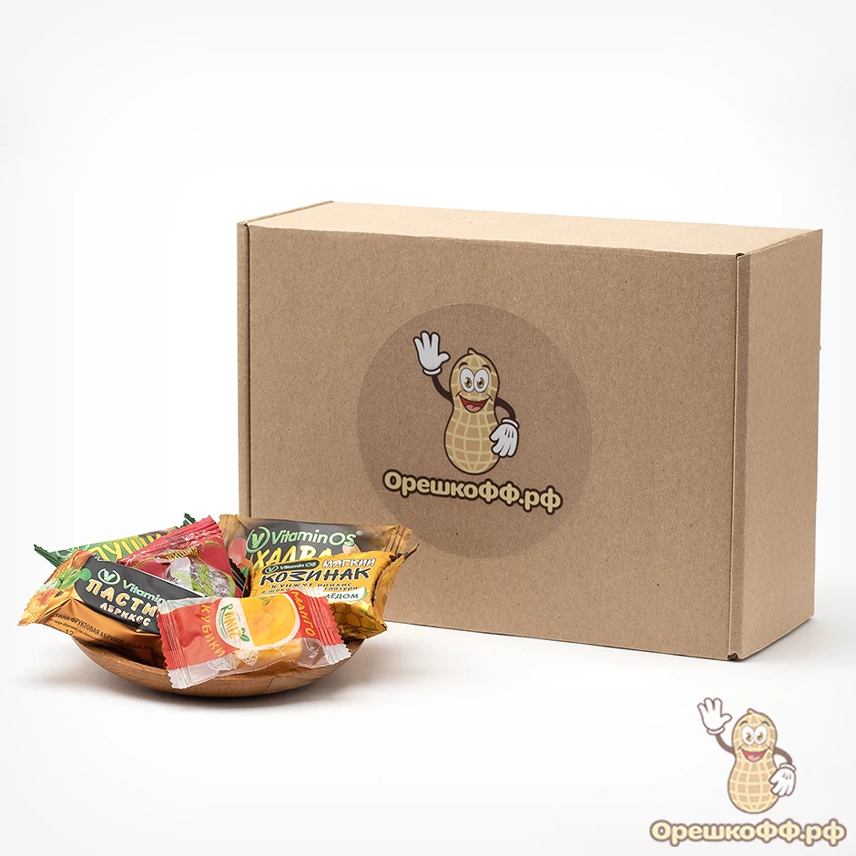 Фруктово-ореховая конфета в глазури Пушка: пюре яблочное, пюре сливы, сок абрикосовый концентрированный, сок вишневый концентрированный, арахис, мед, глазурь кондитерская без сахара, мускатный орех, корица, имбирь.
